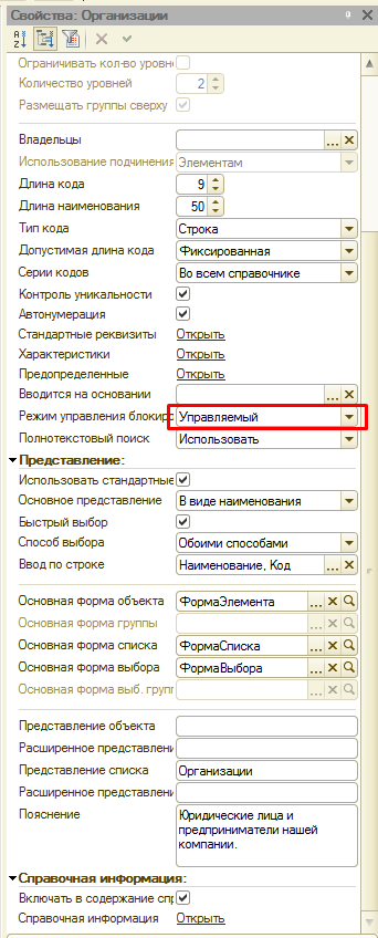 Свойства справочника "Организации"