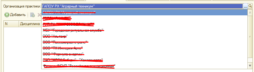 Сейчас выпадающий список, из которого выбирается организация