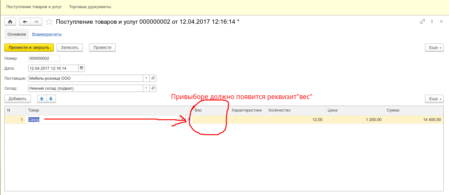 antoneus, Нет это документ "Поступление товаров и услуг" в нем табличная часть а в табличной части есть реквизит "Вес" данный реквизит должен быть скрыт но если значение "сахар" появляется реквизит "Вес" а реквизит "количество" должен скрыться.