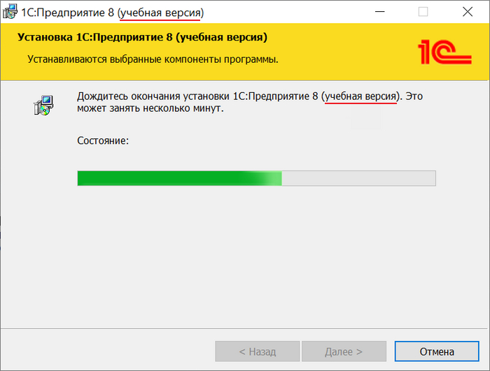 Всем добрый вечер! Недавно узнал о существовании профессии 1С программиста, хотел бы попробовать себя в этом. Нашёл на официальном сайте учебную версию: скачал архив и разархивировал файлы. Когда я наконец перешёл к установке через файл setup.exe, полоса загрузки оставалась полностью серой 10-20 секунд, а потом вылезло окошко с надписью "Windows Installer не отвечает". Искал ответы во всём Интернете, но так и не нашёл. К счастью, набрёл на этот форум, и очень надеюсь решить проблему. Подскажите, с чем это может быть связано и как это решить?